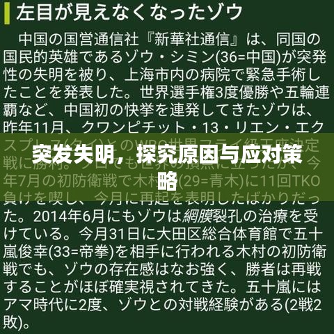 在我们的生活中,突发失明是一种较为罕见但令人恐惧的病症,它可能在一瞬间发生,导致视力急剧下降甚至完全丧失,本文将深入探讨突发失明的原因,以及面对这种情况时我们应该如何应对。