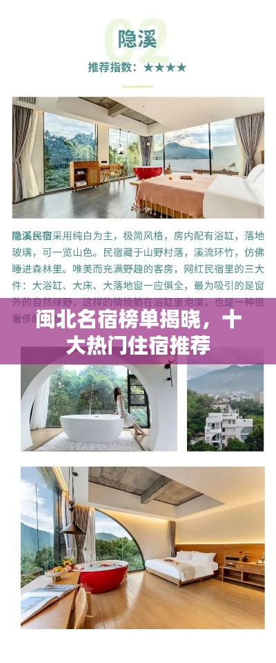 闽北,这片充满历史韵味与大自然魅力的土地,孕育了众多优质的民宿,这些民宿以其独特的风情、优质的服务和舒适的体验,吸引了无数游客的目光,我们将为您揭晓闽北名宿排名前十名,带您领略这片土地的独特魅力。