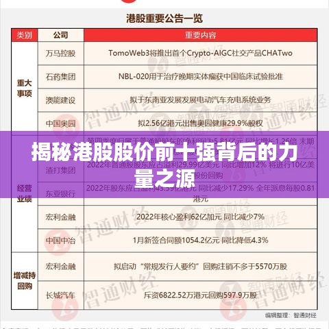 揭秘港股股价前十强背后的力量之源