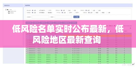 随着科技的不断进步和社会管理的日益精细化,低风险名单的实时公布已经成为现代社会治理的重要手段之一。低风险名单的实时公布不仅有助于提高信息透明度,还能有效降低社会风险,保障人民群众的生命财产安全。