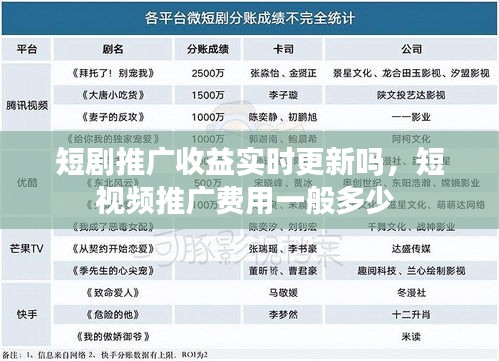 短剧推广收益实时更新吗,短视频推广费用一般多少