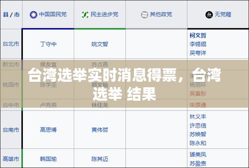 台湾选举一直是全球关注的焦点,尤其是今年的选举,更是备受瞩目。本次选举不仅关系到台湾的政治走向,还可能对两岸关系产生深远影响。在选举过程中,实时消息的更新成为了人们获取最新信息的途径。以下是关于台湾选举实时消息得票情况的综述。