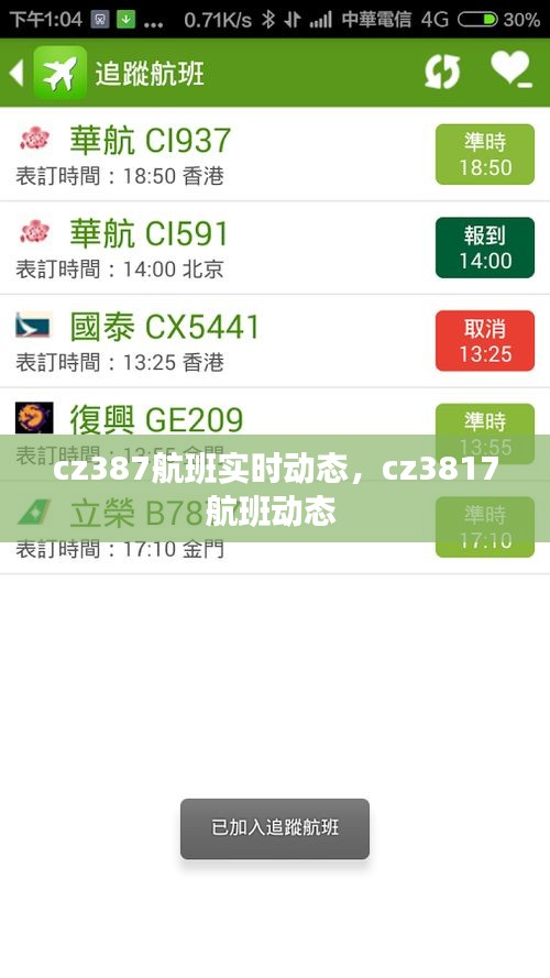 cz387航班实时动态,cz3817航班动态