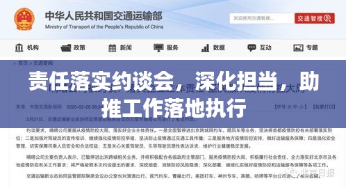 一场关于“责任落实约谈会”的会议在某会议室隆重召开,此次会议旨在深化责任担当,推动各项工作的落实,确保各项任务按期完成,会议围绕责任落实展开,旨在解决工作中存在的突出问题,进一步提升工作效率。