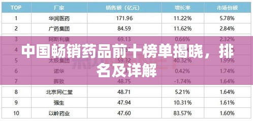 中国畅销药品前十榜单揭晓,排名及详解