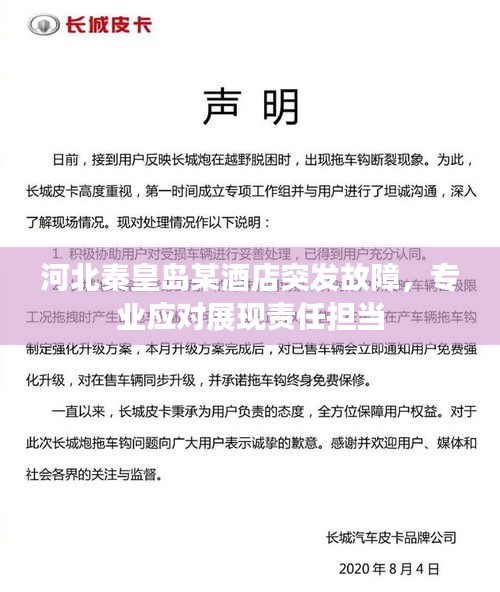 位于河北省秦皇岛市的某知名酒店发生了一起突发故障事件,这一事件引起了广泛关注,不仅因为该酒店是当地的标志性建筑之一,更因为事件发生时正值旅游旺季,酒店内的客人数量众多,面对这一突发状况,酒店方面的应对措施展现出了高度的专业性和责任感。