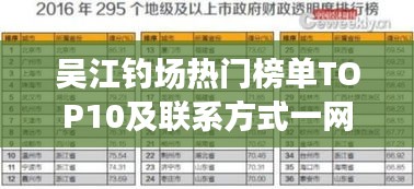 吴江作为江苏省苏州市的一个繁荣地区,拥有众多钓鱼爱好者的青睐,本文将为您介绍吴江地区排名前十的钓场,并提供相应的联系方式,以便您能够轻松找到适合自己的钓鱼场所。
