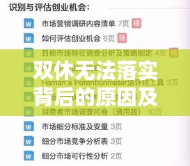 双休日作为一种重要的休息制度,旨在保障劳动者的身心健康,提高工作效率,在现实生活中,许多劳动者却难以享受到双休日的福利,本文将从多个角度探讨为何双休无法落实,并提出相应的解决方案。