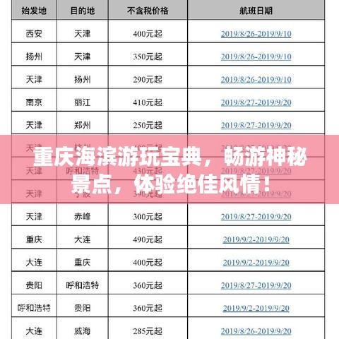 重庆,这座山水之城,近年来以其独特的魅力吸引着越来越多的游客,除了著名的洪崖洞、解放碑、磁器口等景点,重庆附近的海滨地区也逐渐成为度假的新热点,本文将为您带来一份详尽的重庆海滨旅游攻略,带您领略海滨风情与都市魅力的完美结合。