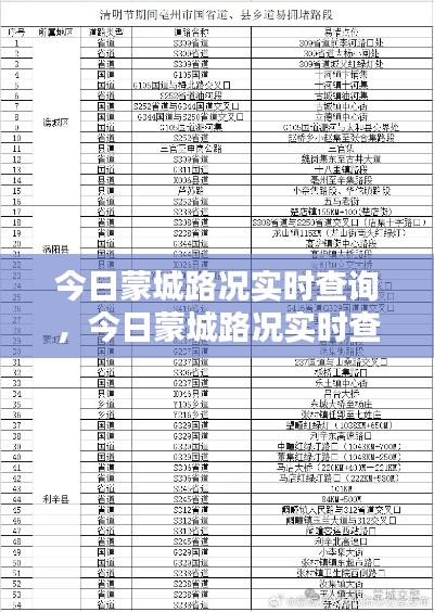 今日蒙城路况实时查询,今日蒙城路况实时查询表