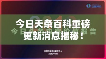 今日天条百科重磅更新消息揭秘!