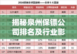 揭秘泉州保镖公司排名及行业影响力榜单