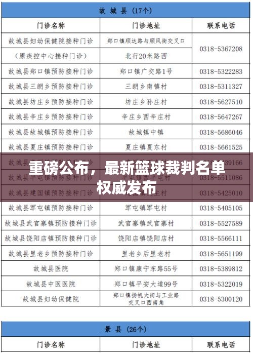 随着篮球运动的不断发展,比赛水平不断提高,裁判的工作也变得越来越重要,作为比赛中的公正执法者,裁判的威严和公正性是比赛顺利进行的重要保障,最新一期威严篮球裁判名单公布,引起了广大篮球爱好者和专业人士的关注,本文将围绕这一主题展开,介绍最新篮球裁判名单的相关内容。