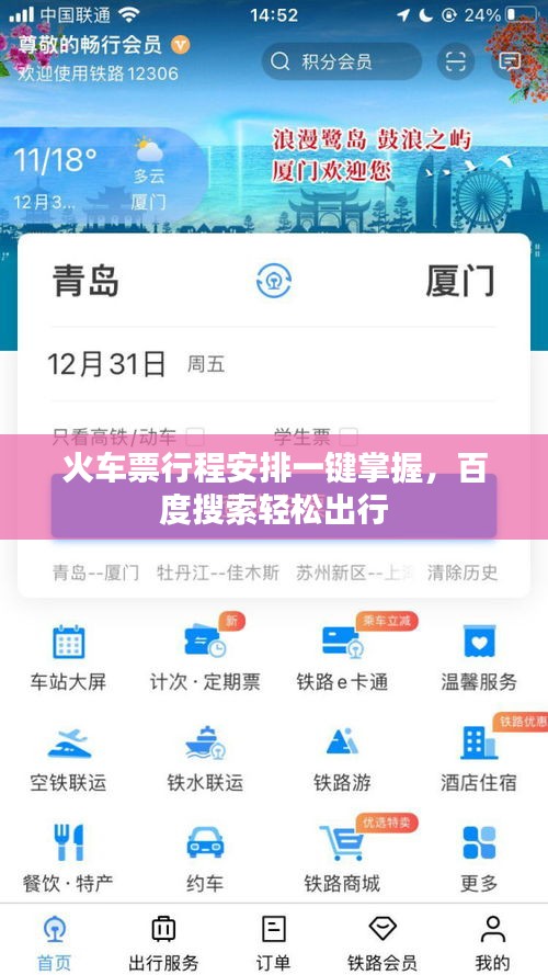 购买火车票后,行程管理同样重要,通过百度搜索,您可以轻松找到相关的行程管理工具,您可以实时查看订单状态、列车时刻、座位号等信息,方便您合理安排出行时间,还能及时获取列车晚点、停运等实时信息,让您轻松应对突发情况。